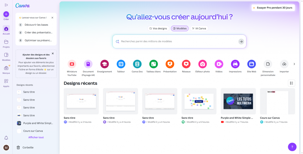 • Modèles : Vous permet de trouver un modèle pour vous inspirer