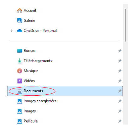- Une fenêtre va s’ouvrir, allez dans documents ou mes documents.