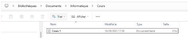 - Allez dans le dossier cours et crée un document de votre choix avec comme nom “ Cours 1”