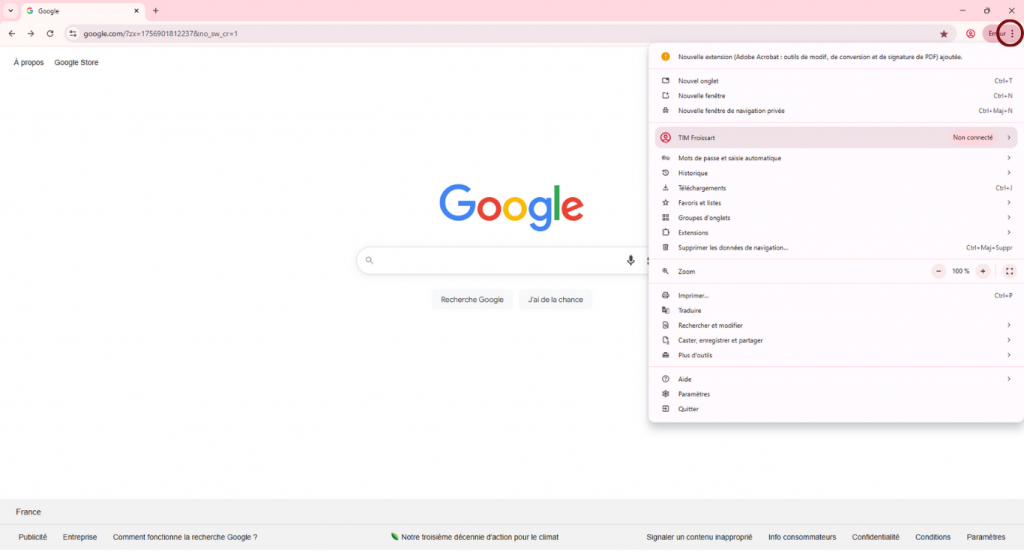 - Dans votre navigateur, appuyez sur les 3 points comme entourez si dessous